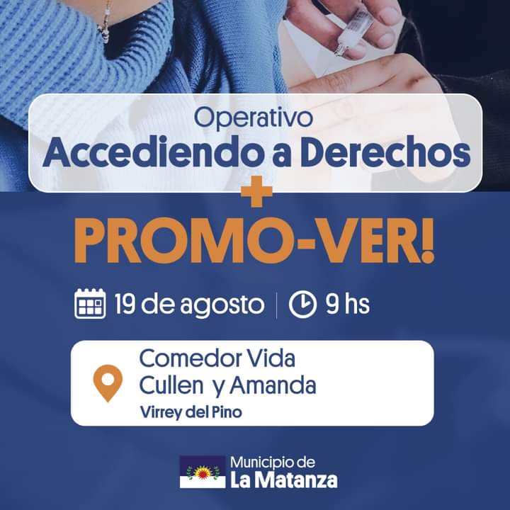 Este viernes 19 de agosto llega el programa «Mesas Territoriales de La Matanza» de Accediendo a Derechos del municipio en conjunto con ANSES, el cual realizará un operativo en el distrito junto con el programa Promo-Ver de la Secretaria de Salud del municipio de La Matanza.