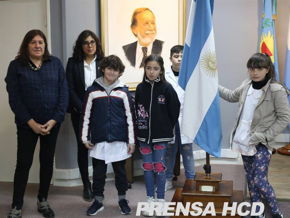 La Presidenta del HCD, Liliana Pintos, recibió en el recinto de sesiones a la Defensora del Pueblo, Silvia Caprino, junto a los alumnos de 5º año de la escuela EP15 de Isidro Casanova.