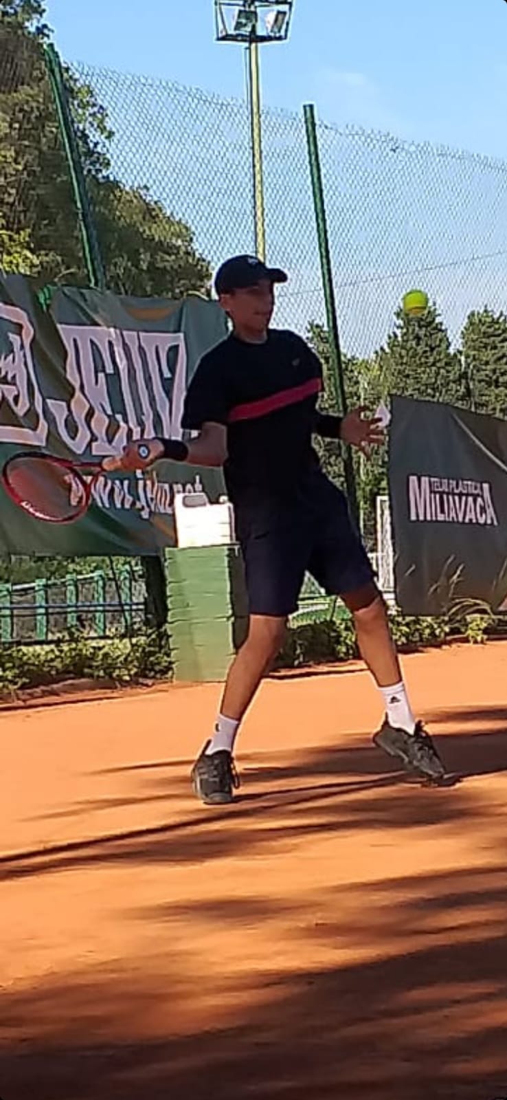 Entrena en el prestigioso Oasis Tenis Club de Ciudad Evita, donde día a día deja todo para lograr seguir marcando su carrera en lo más alto.