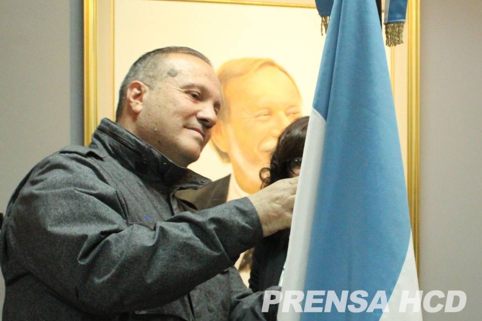 La Presidenta del HCD, Liliana Pintos, dio la bienvenida a los presentes y mientras se entonaba el Himno Nacional, el Concejal Jorge Lampa fue quien izó la bandera nacional.