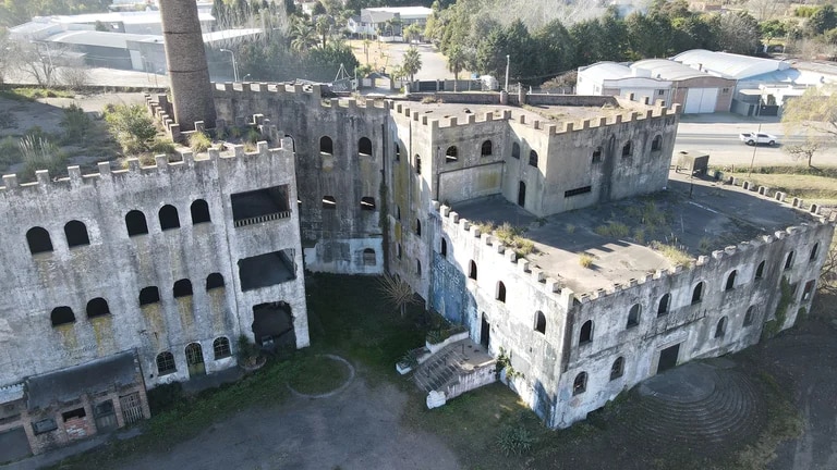 El inmueble de 5 niveles de alto conserva su chimenea intacta y, con más de 5.000 metros cuadrados totales, fue por mucho tiempo la edificación más elevada de Cañuelas, y la primera en tener ascensor. Se comercializa por 3,8 millones de dólares.