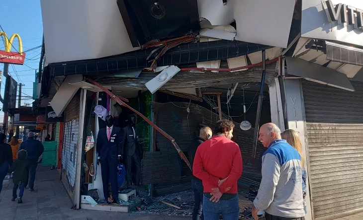 El camión se incrustó contra el comercio de indumentaria masculina “Vittorio”, ubicado en la esquina de Arieta e Eizaguirre, en la localidad de San Justo.