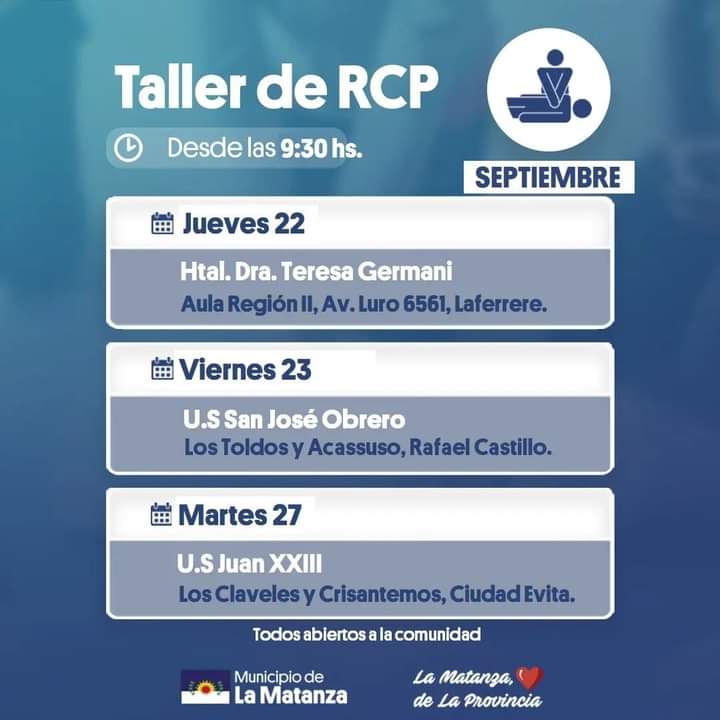 Desde la Secretaría de Salud anunciaron que habrá Talleres de RCP y Primeros Auxilios en el municipio de La Matanza.