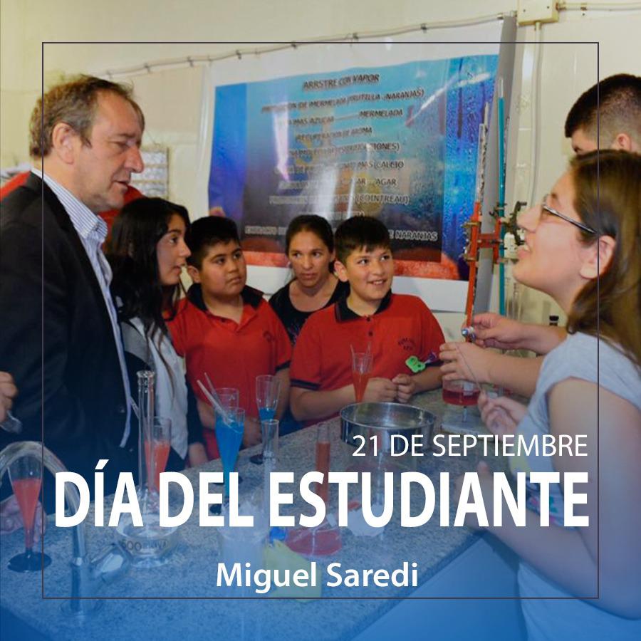 En ese sentido Saredi expresó: «Es un día dedicado a los estudiantes, y por ello quiero saludarlos en su día, y destacar su esfuerzo, para lograr el sueño que cada estudiante se propone, desde muy chicos, desarrollando su capacidad con el estudio para lograr conseguir, a través de sus conocimientos, una sociedad más justa».