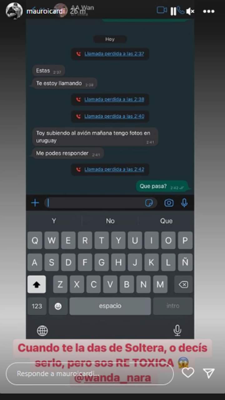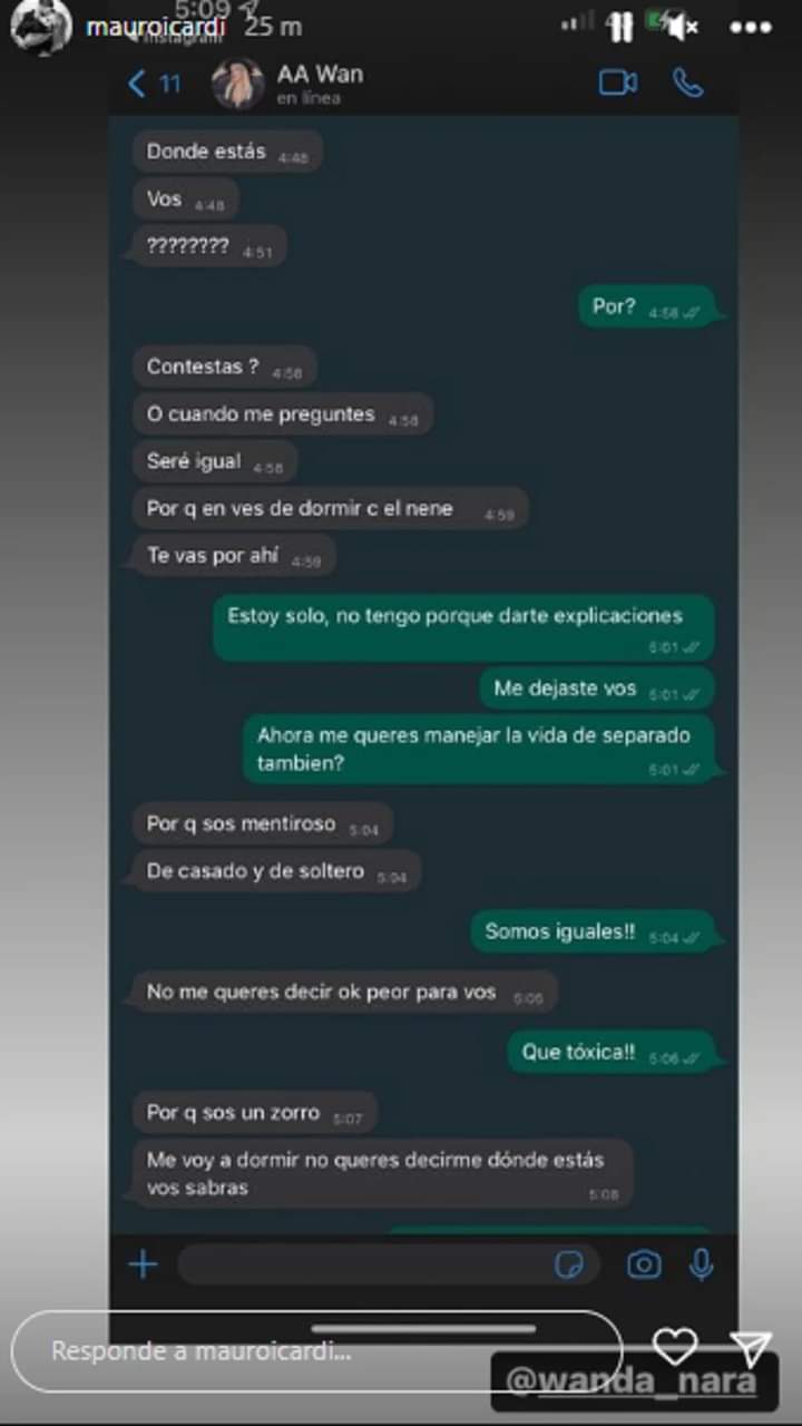Luego, la mediática empresaria continuó: “¿No me querés decir? Ok, peor para vos”. “¡Qué tóxica!”, comentó Mauro. Pero Wanda volvió a escribir y expresó: “Porque sos un zorro. Me voy a dormir, no querés decirme donde estás, vos sabrás.”