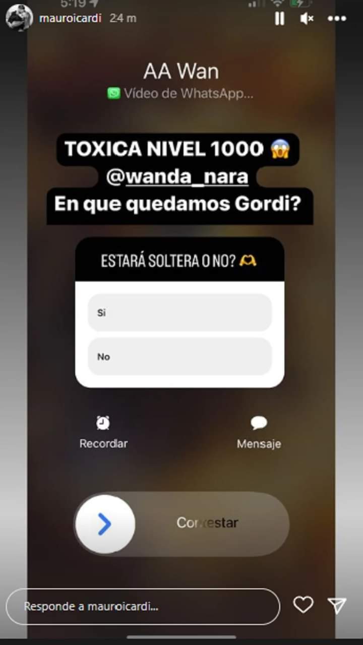 La segunda parte de la charla entre Wanda Nara y Mauro IcardiMinutos después de ese mensaje, la hermana de Zaira decidió hacerle una videollamada. No solo publicó la captura del llamado, sino que escribió: “Tóxica nivel 1000. ¿En qué quedamos, gordi?”. Y, buscando la complicidad con sus seguidores, compartió una encuesta: “¿Estará soltera o no?”