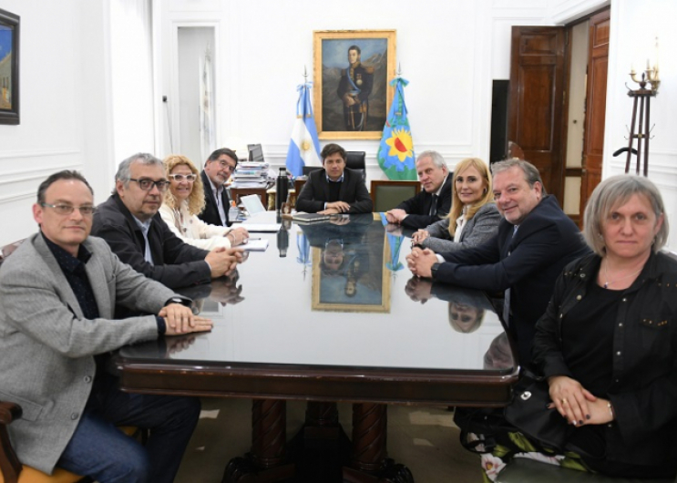 El gobernador Axel Kicillof encabezó esta tarde una reunión con el ministro de Educación de la Nación, Jaime Perczyk, y el director general de Cultura y Educación, Alberto Sileoni, en la que se suscribió un convenio para ampliar la jornada educativa en escuelas primarias de gestión estatal de la provincia de Buenos Aires.