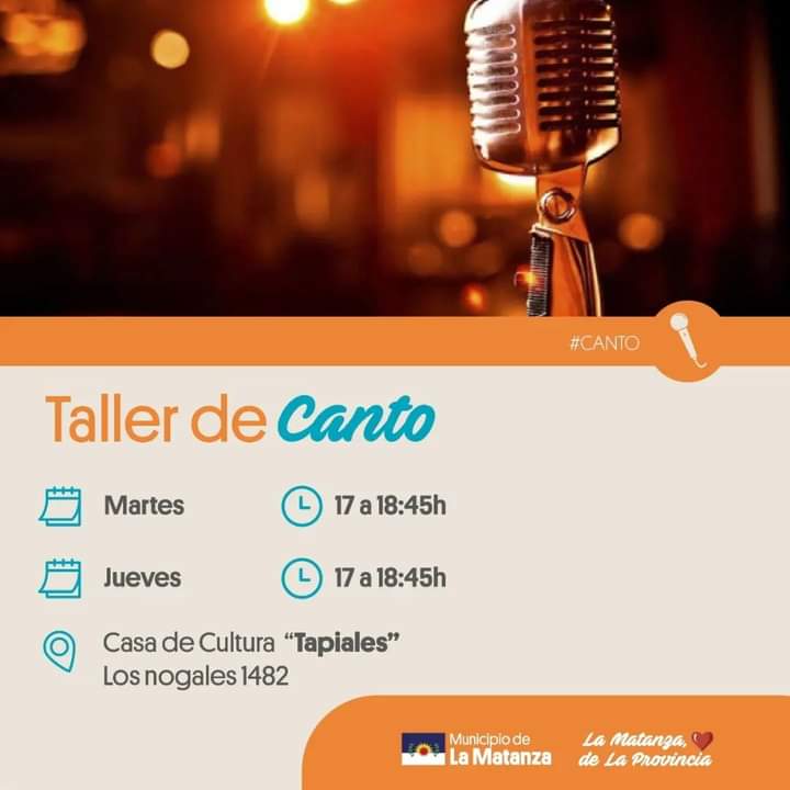La Secretaría de Cultura y Educación del municipio de La Matanza informó acerca del Taller de Canto que se dicta de forma gratuita en la localidad de Tapiales.