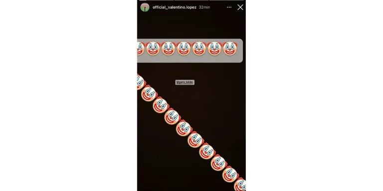 En este sentido, el hijo mayor de Wanda, Valentino López, compartió una historia en su cuenta oficial de Instagram en la que escribió una serie de emojis de payado y etiquetó a L-Gante.