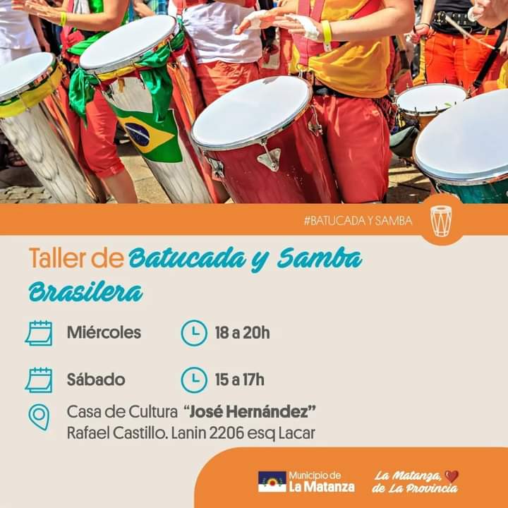 La Secretaría de Cultura y Educación del municipio de La Matanza informó acerca del Taller de Batucada y Samba Brasilera que se dicta de forma gratuita en la localidad de Rafael Castillo.