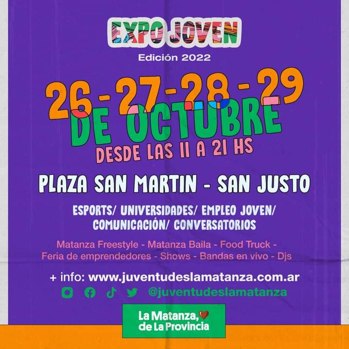 El municipio de La Matanza anunció la llegada de otra edición de Expo Joven para compartir una propuesta llena de cultura popular en familia y con amigos.
