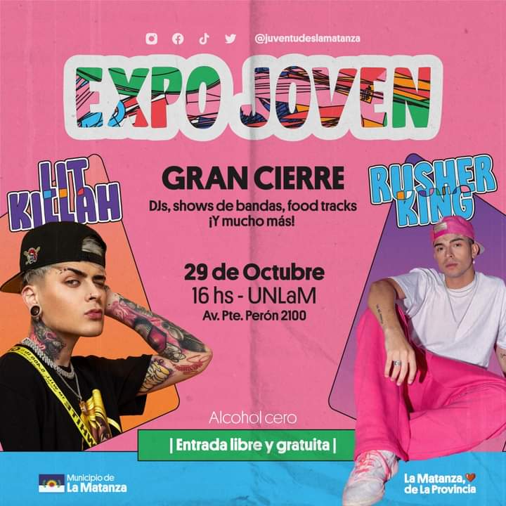 El sábado 29 de octubre finaliza la edición 2022 de Expo Joven y los encargados de dar los shows de cierre serán Lit Killah y Rusherking.