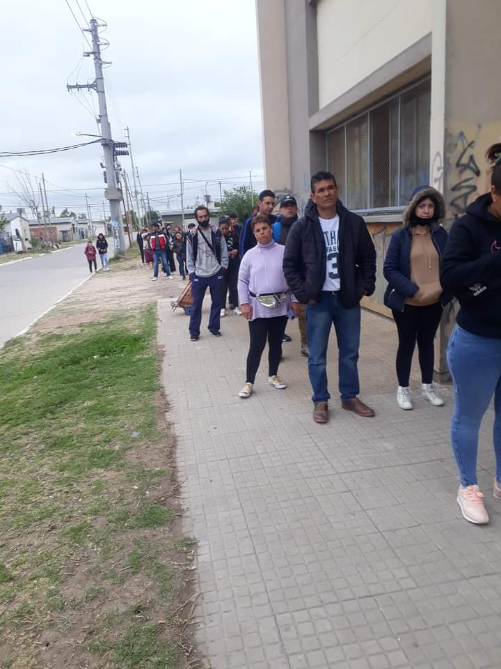 Vecinos nos hicieron llegar imágenes de las Largas filas en la parada de colectivos, en la cabecera del Barrio Gol, localidad de Virrey del Pino.
