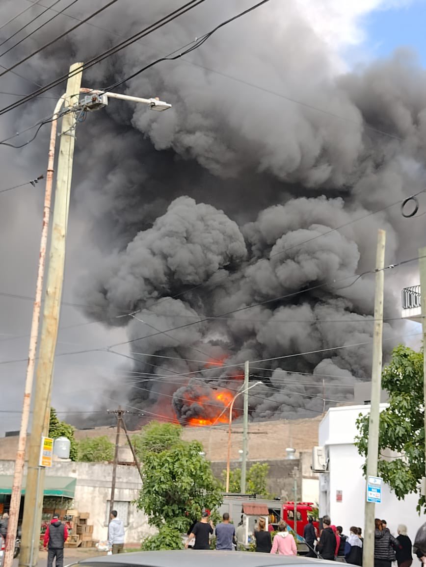 El siniestro tiene lugar en una empresa que produce plástico. En el lugar trabajan más de 10 dotaciones de bomberos. Los vecinos debieron abandonar sus casas y por el momento no se registraron víctimas fatales. Las impactantes imágenes.
