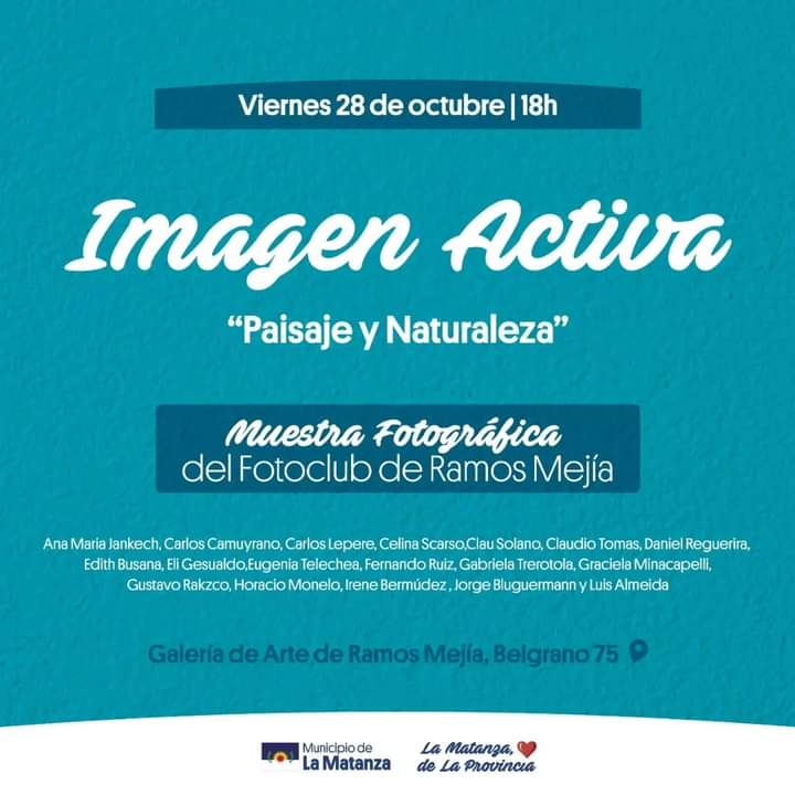 La muestra fotográfica estará a cargo del Foto Club de Ramos Mejia el cual propone un recorrido por los trabajos de sus alumnos que, desde su lente, buscan en cada imagen re elaborar el genero «paisajísmo» y darle una nueva relevancia.