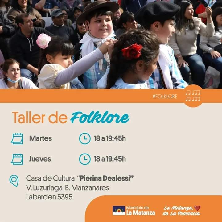 La Secretaría de Cultura y Educación del municipio de La Matanza informó acerca del Taller de Folklore que se dicta de forma gratuita en la localidad de Villa Luzuriaga.