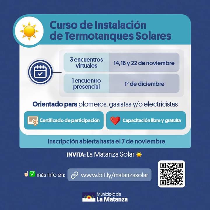 La capacitación es gratuita y estará orientada a plomeros, gasistas y/o electricistas con el fin de incrementar sus posibilidades laborales en estos oficios relacionándolos con la energía solar térmica.