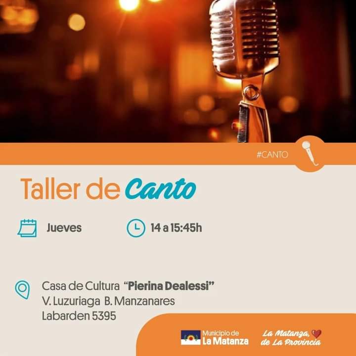 La Secretaría de Cultura y Educación del municipio de La Matanza informó acerca del Taller de Canto que se dicta de forma gratuita en la localidad de Villa Luzuriaga.