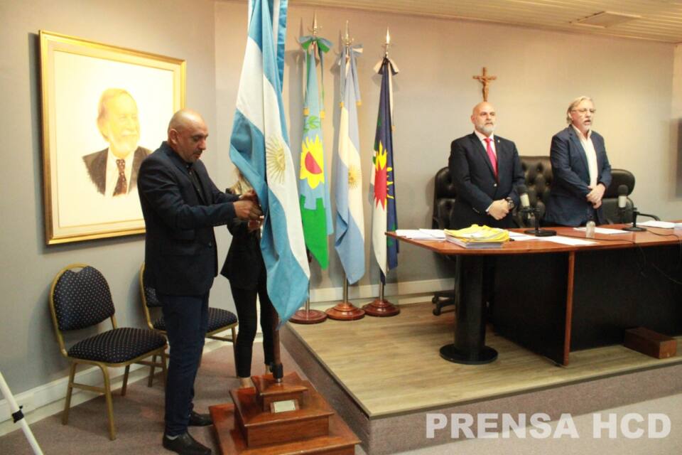 La sesión estuvo comandada por el Vicepresidente, Sergio Landin, junto al Secretario del Cuerpo, Dr. Carlos Orsingher comandaron la sesión. Y la bandera fue izada por el Concejal Javier Méndez.