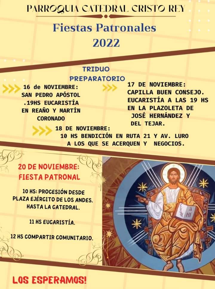 La Fiesta será en la Catedral Cristo Rey el domingo 20 y te contamos el cronograma.