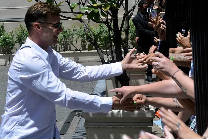 Hace tan solo dos días el cantante llegó a la Argentina y cientos de fanáticos esperaron amontonados en la puerta del hotel donde se aloja.