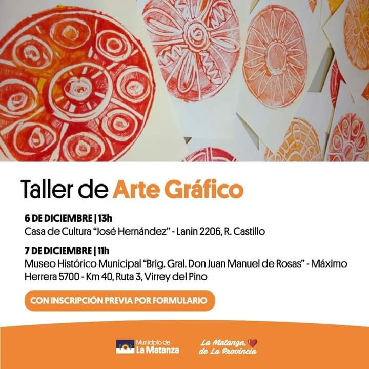 Se realizará el día martes 6 de diciembre a las 13 horas en la Casa de Cultura de Rafael Castillo “José Hernández”, ubicado en Lanin 2206. Y el miércoles 7 de diciembre a las 11 horas en el Museo Histórico Municipal “Brig. Gral. Don Juan Manuel de Rosas”, ubicado en Máximo Herrera 5700- km 40, Ruta 3, Virrey del Pino.