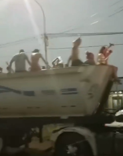 Allí varios hinchas decidieron meterse, mientras el camión recorría el centro de Laferrere, los hinchas pudieron meterse a la pileta y festejar con todos los vecinos.