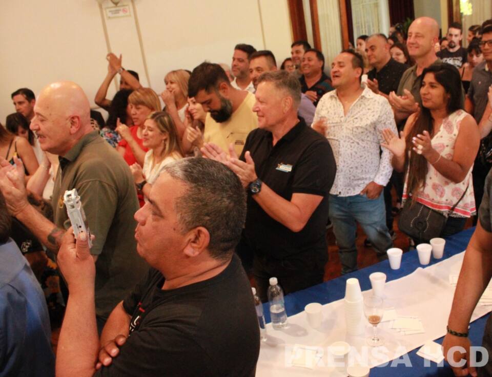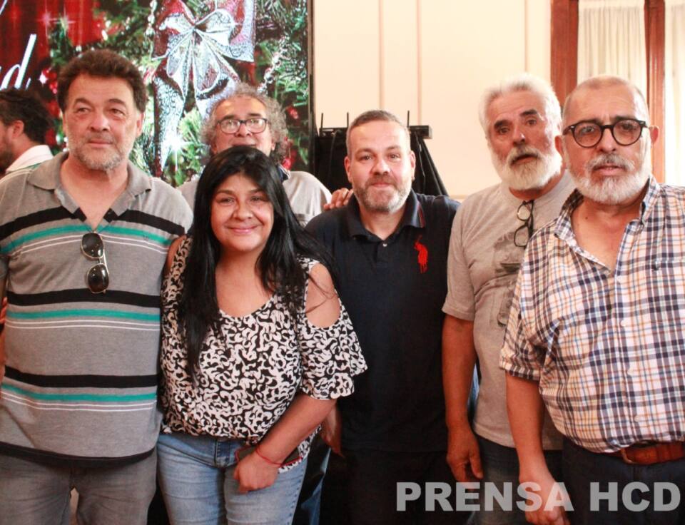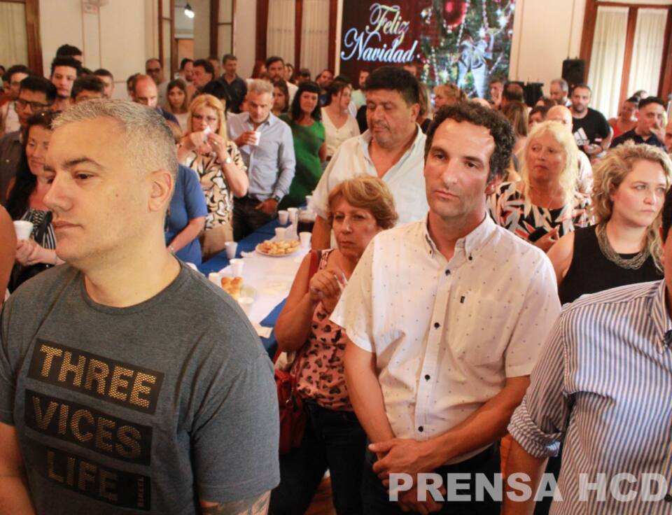 La Presidenta del HCD, Liliana Pintos, el Secretario del Cuerpo, Dr. Carlos Orsingher, el Vicepresidente del HCD, Sergio Landin, el Presidente del Bloque del FdT, Rolo Galván, los Ediles, Jorge Carrasco, Alicia Quiroz, Laura Chamorro, Micaela Durigan y Javier Méndez compartieron el brindis tradicional de fin de año, que realizó el Intendente Fernando Espinoza en el Palacio Municipal.