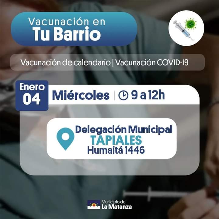 Desde la Secretaría de Salud del municipio de La Matanza informó que van a estar vacunando con las dosis de Calendario y contra el Covid-19 para todas las edades a través de las postas territoriales.