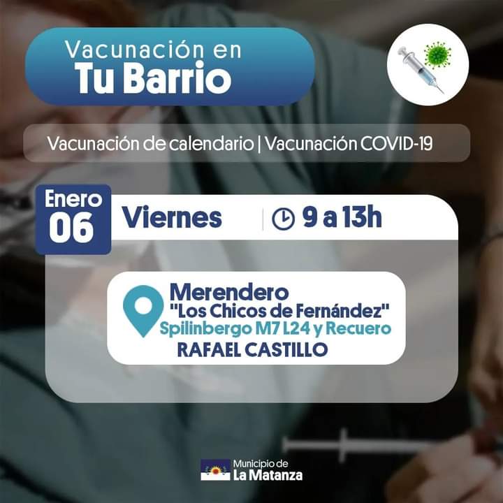 Desde la Secretaría de Salud del municipio de La Matanza informó que van a estar vacunando con las dosis de Calendario y contra el Covid-19 para todas las edades a través de las postas territoriales.