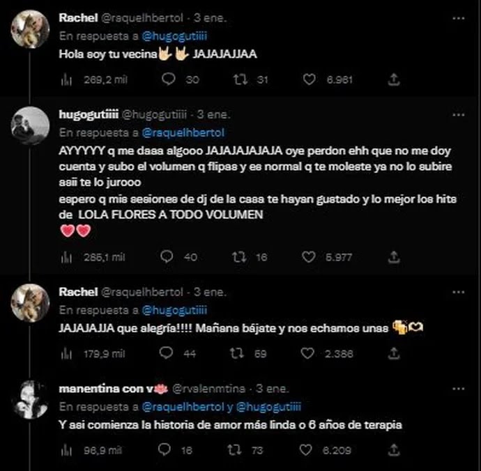 “PD: He visto que te gusta el rap y Kase-O, así que me gustaría recomendarte dos grupos bastante buenos de rap: Lágrimas de Sangre y Natos y Waor”, concluyó la vecina, quien demostró su conocimiento en la materia.