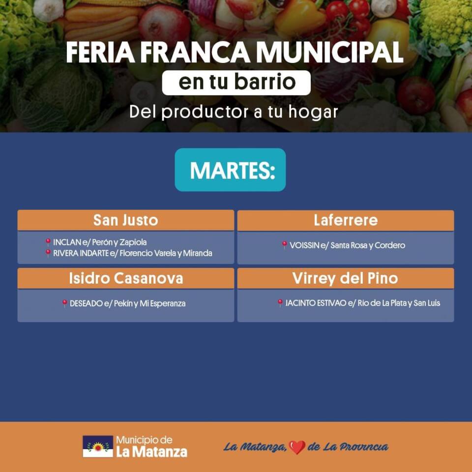 Desde el municipio de La Matanza compartieron información acerca de todos los puntos del distrito donde podrán encontrar Ferias con productos de primera calidad hasta un 50% menos de su valor.