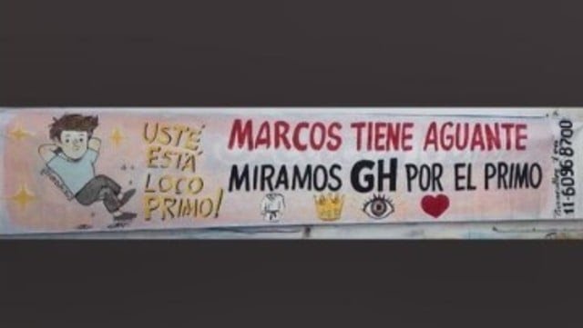 “Usted está loco, primo”, dice en referencia a la forma que tiene de dirigirse hacia los demás el popular participante y en tipografía más grande declara, bien visible: “Marcos tiene aguante: miramos GH por él”. Una caricatura del salteño es la frutilla de la torta, y si se quiere el toque más personal y artístico que Leo, como también conocen a este incansable emprendedor de San Justo, le dio al encargo.