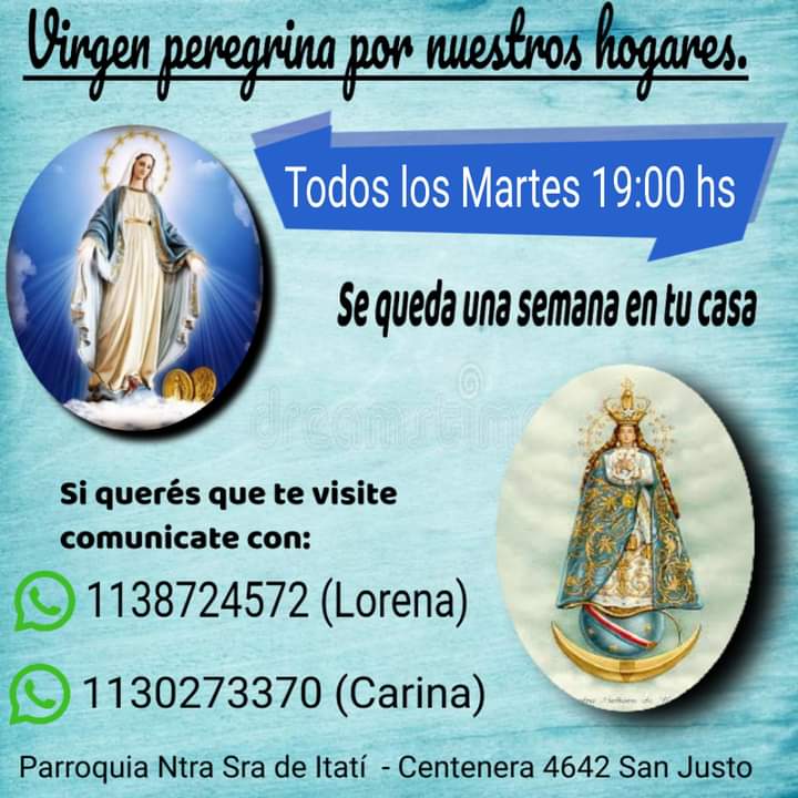 La Parroquia Nuestra Señora de Itatí informó que la Virgen de Itatí peregrina por los hogares de La Matanza.