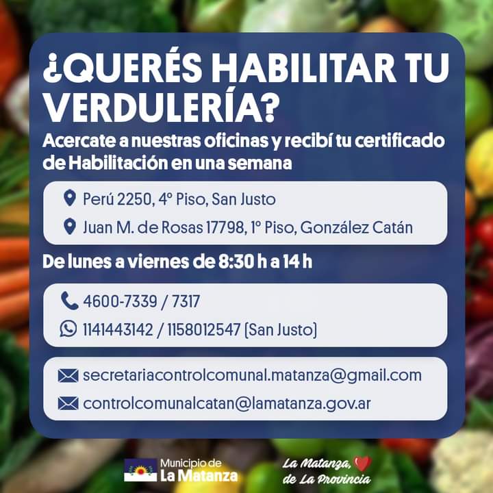 El Municipio de La Matanza informó sobre la documentación necesaria para habilitar una verdulería.