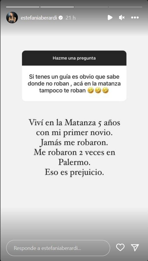 “Si tenes un guía es obvio que sabe dónde no roban, acá en La Matanza tampoco te roban”, le escribió, junto a unos emojis de carcajadas.