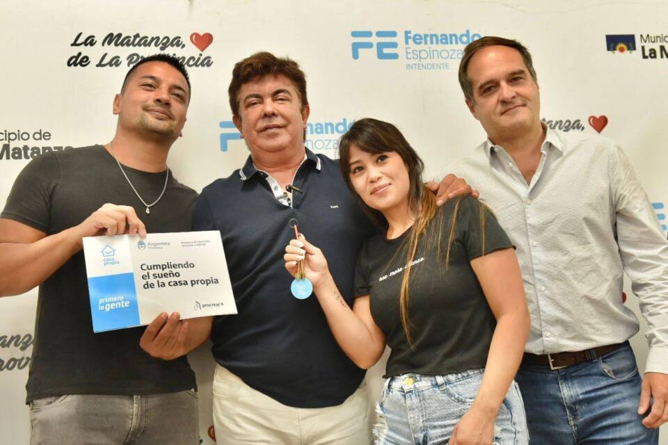 Él Ministros Maggiotti y el Intendente de La Matanza, Fernado Espinoza entregaron las llaves de sus nuevos hogares a vecinas y vecinos matanceros, que ya se podrán mudar al Desarrollo Urbanístico Ciudad Evita.