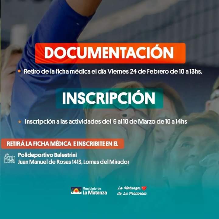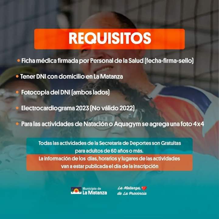 ⚠️ Para más info podes acercarte del 6 al 10 de Marzo al polideportivo Balestrini ubicado en Juan Manuel de Rosas 1413 de Lomas de Mirador, o contactarte a las redes de @adultosmayores.lamatanza