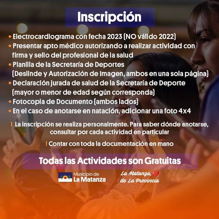 Para inscribirte podés hacerlo a partir del sábado 25/2 y todos los sábados de 10 a 13hs., en el Polideportivo Balestrini, Juan Manuel de Rosas 1413, Lomas del Mirador.