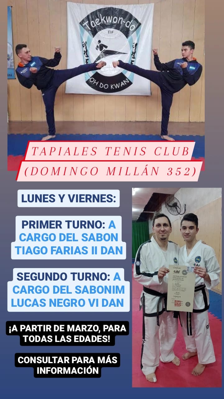 Clases de TAEKWONDO en Tapiales , de la mano del joven campeón Sudamericano, Tiago Farias, que tiene mucho para dar y enseñar.