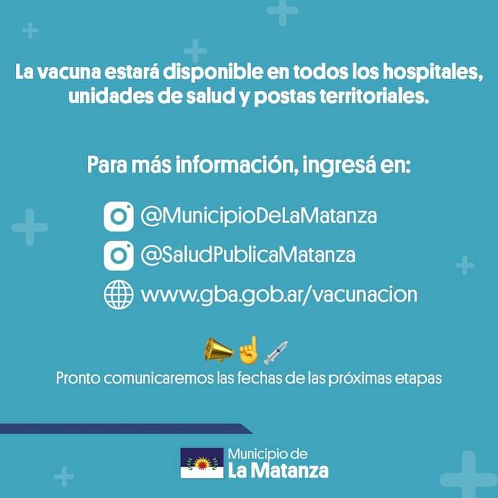 📌Para más info, comunicate con SALUD PUBLICA – LA MATANZA o ingresá en www.gba.gob.ar/vacunacion