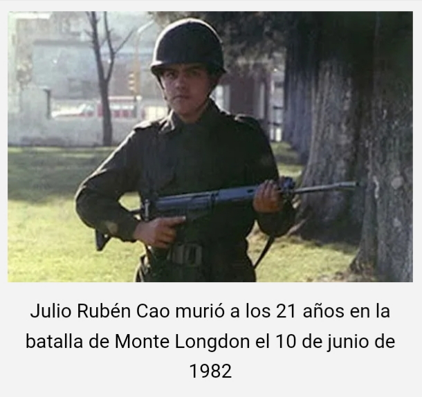 Saredi detalló: «Julio Rubén Cao tenía 21 años cuando le comunicó a su familia que había decidido ir de voluntario a las islas Malvinas. Partió el 12 de abril de 1982 hacia Puerto Argentino junto al Regimiento de Infantería Mecanizado N° 3 del Ejército«.