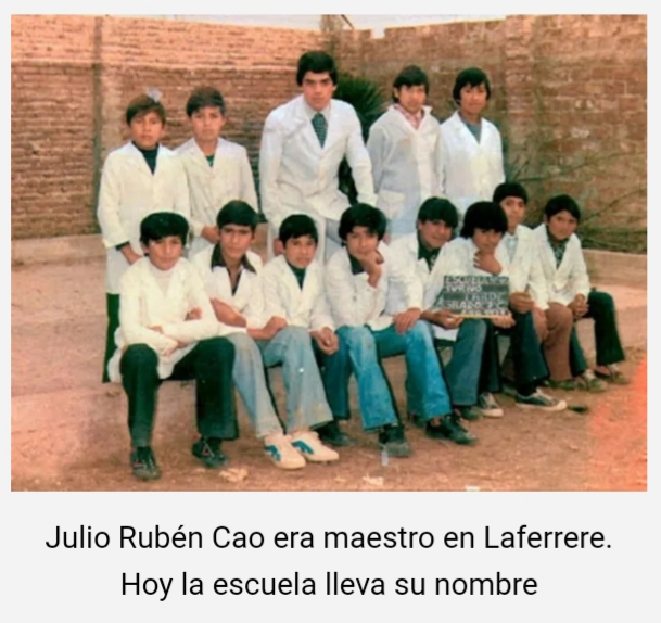 Miguel Saredi nos contó que: “Julio Rubén Cao era maestro. Amaba ir todas las mañanas hasta la Escuela N°32 de Gregorio de Laferrere y saludar a sus alumnos de 3° D, así cuentan todos los que lo conocieron”.