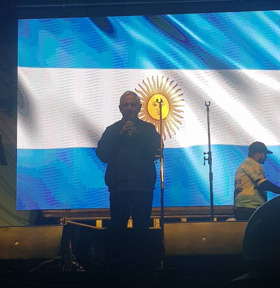 Mas tarde, la Banda de la policía entonó las estrofas de la canción que cada vez que escuchamos nos sigue emocionando y nos une a todos, «Muchachos». Mencionando esta canción que nos marcó durante el último mundial, donde nos consagramos Campeones del Mundo, se recibió un saludo especial por el cantante de la Mosca, para todos los presentes.