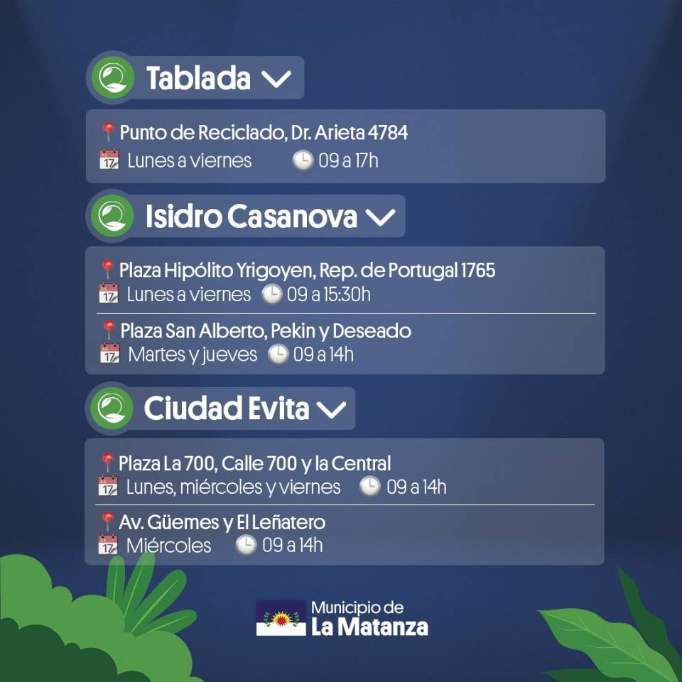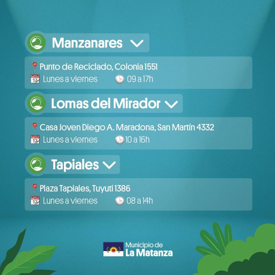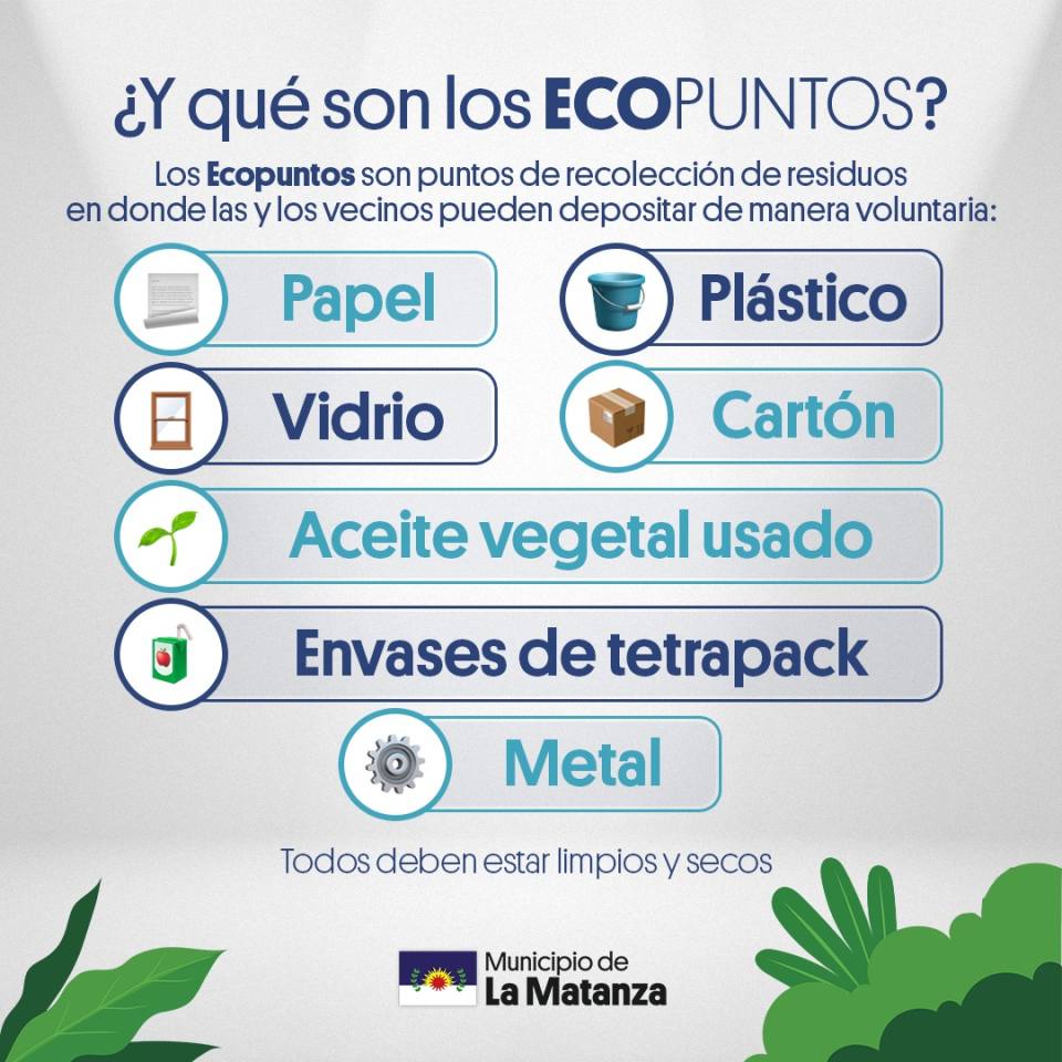 La Matanza ha implementado los Ecopuntos, una iniciativa para recolectar y reciclar residuos secos y sólidos. Estos puntos de recolección permiten a los ciudadanos depositar residuos como papel, vidrio, cartón, metal, plástico, aceite vegetal usado, envases de tetrapack, y más. La iniciativa tiene como objetivo reducir la cantidad de residuos y fomentar el reciclaje en la comunidad.
