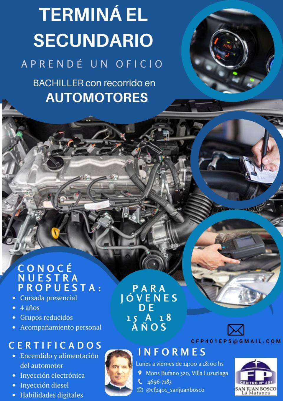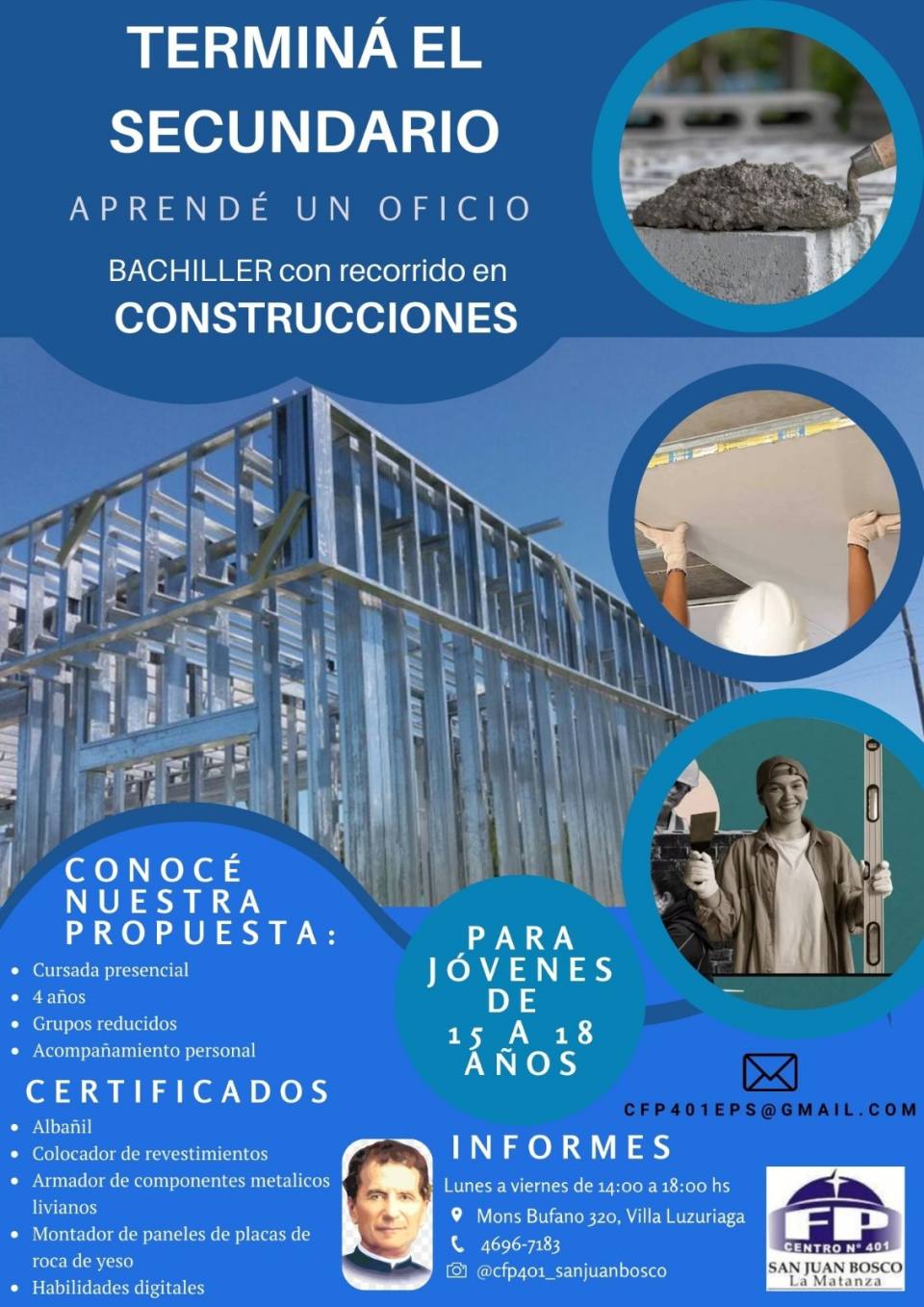 CFP 401, San Juan Don Bosco. en M. Bufano 320 ( Villa Luzuriaga. Lunes a viernes de 14 a 18 hs., tel.: 46967183