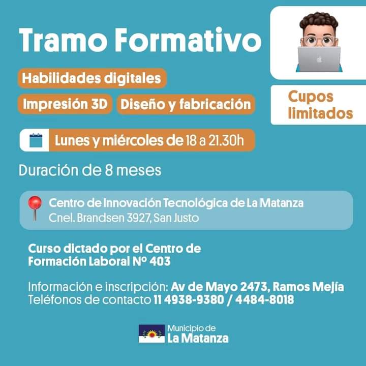En La Matanza, nuevo curso gratuito: Tramo Formativo sobre Impresión 3D.