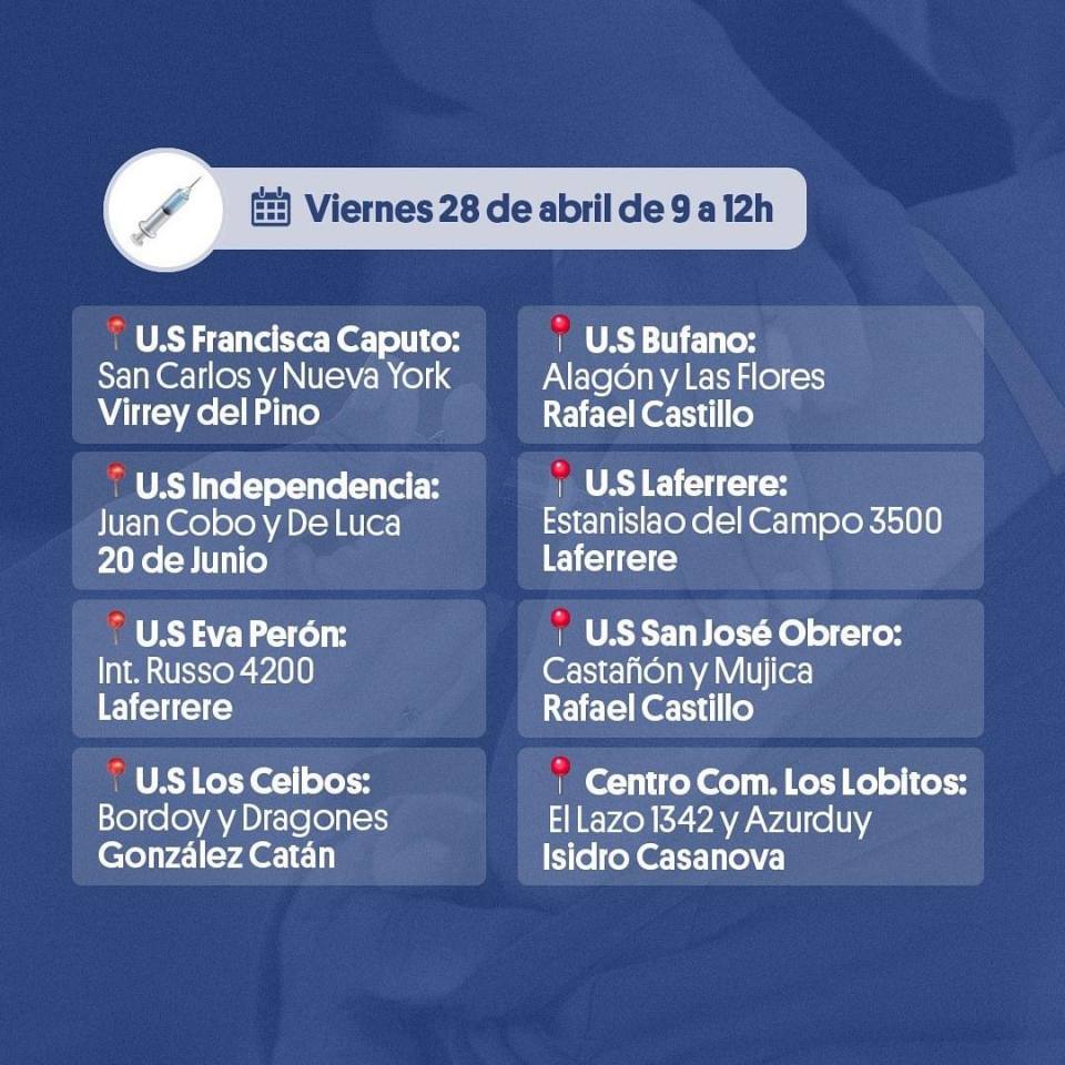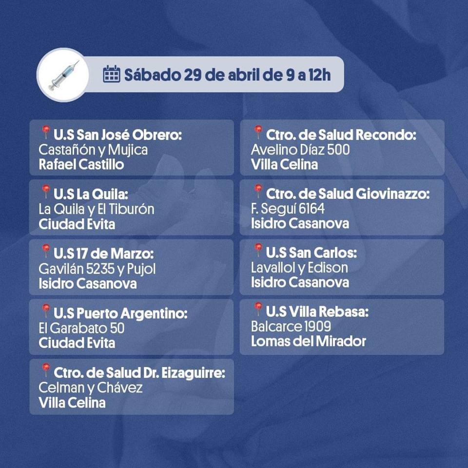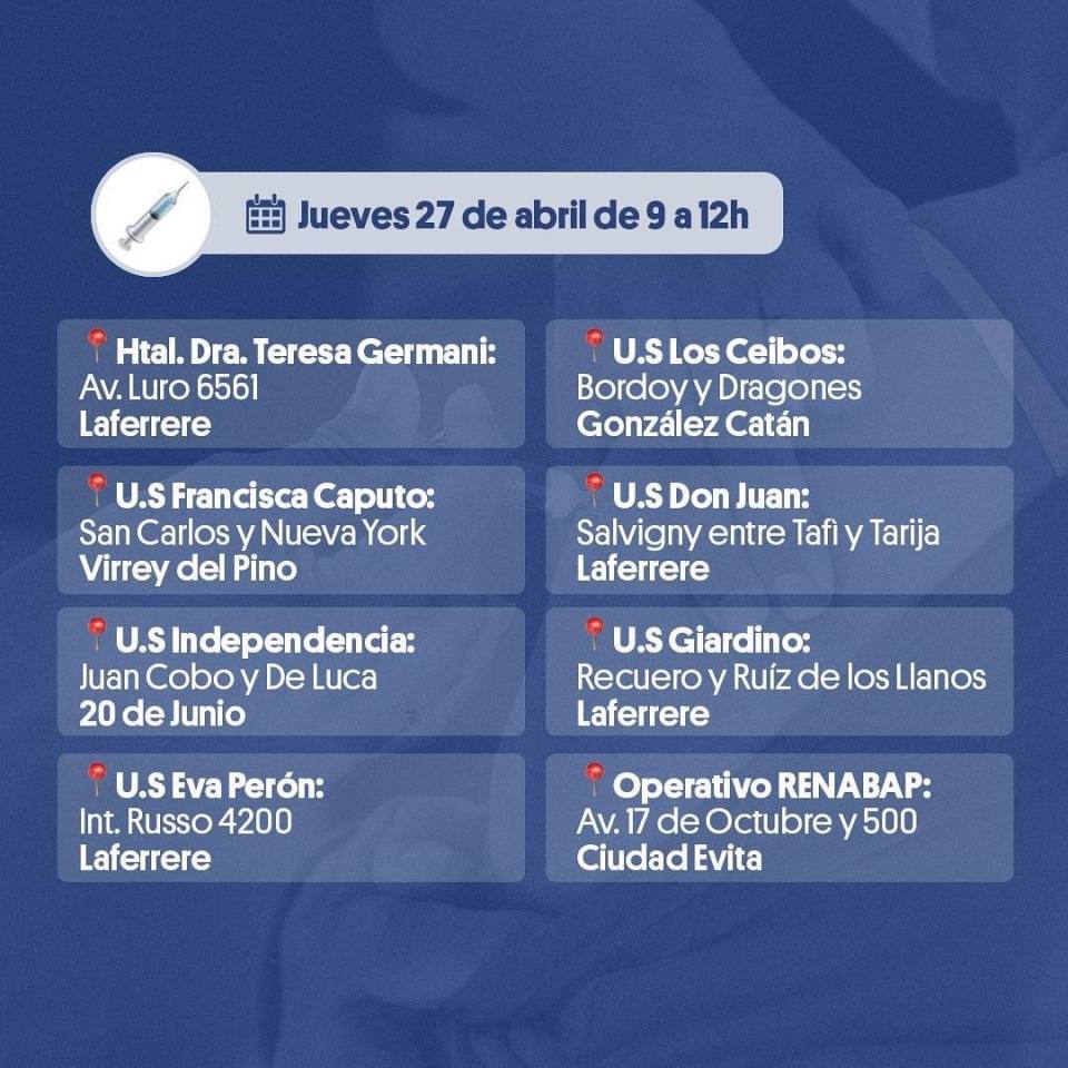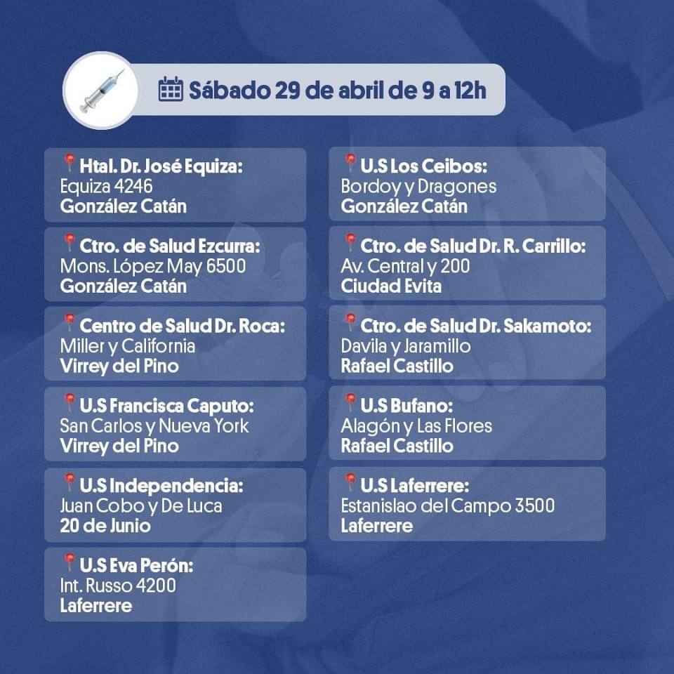 La campaña de vacunación en La Matanza continúa su curso, con el objetivo de inmunizar a la mayor cantidad de personas posible. En esta ocasión, las autoridades locales han anunciado que, entre el 25 y el 29 de abril, de 9 a 12 horas, se llevará a cabo la distribución de dosis de Calendario Nacional, COVID-19 y antigripal en diferentes efectores y postas territoriales de salud seleccionados a lo largo del Distrito.