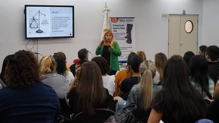 Con inscripción previa, entre quienes se encontraban profesionales de la salud, personal docente y vecinos/as que acompañan a las personas con TEA, contó con las exposiciones de la Mg. Silvana Corso, la Dra. Alcira Escandar y el Lic. Fernando Paz.