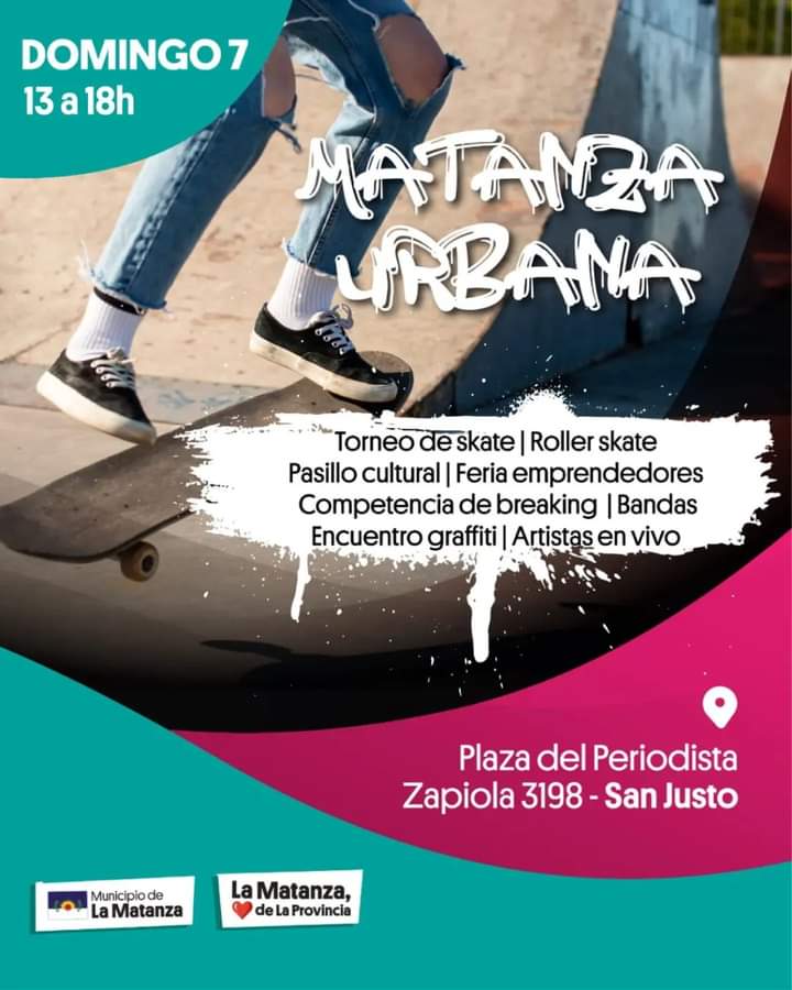 “𝗠𝗔𝗧𝗔𝗡𝗭𝗔 𝗨𝗥𝗕𝗔𝗡𝗔” – Festival El Domingo 7/05 a las 13 hs. SKATE PARC San Justo (Plaza del Periodista – Zapiola 3198, esquina Peru)